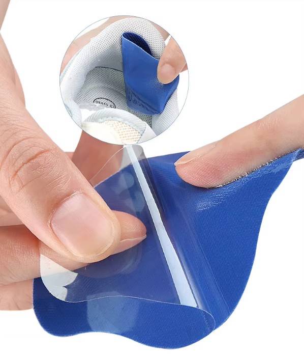 Shoe Heel Repair Patch made from a polyester fabric with a self adhesive backing to repair worn heel area of the shoe and the edges of the collar of the shoe. Each pack contains 2 x heel patches; 2 x oval patches; and 4 x rectangular patches.
